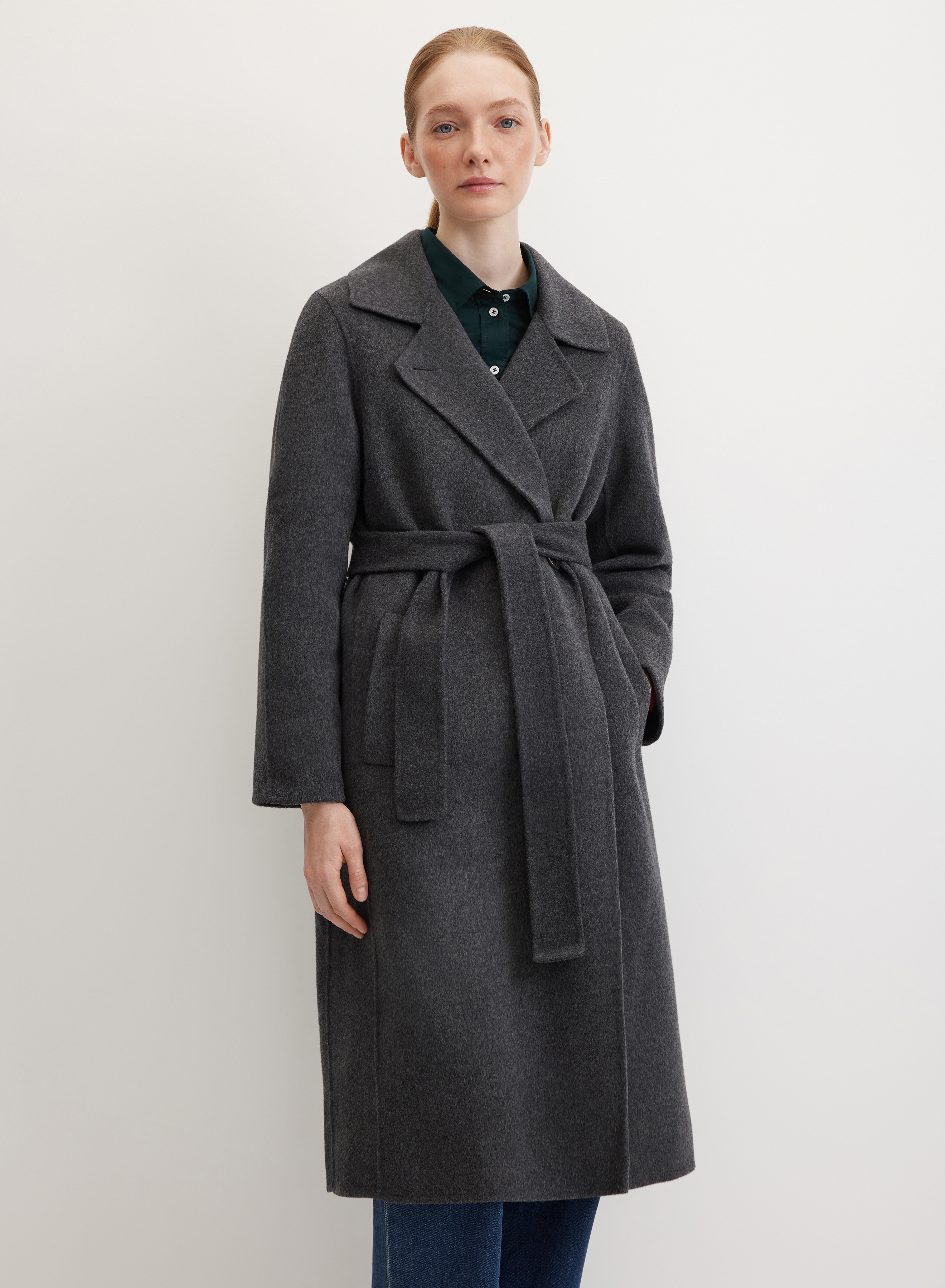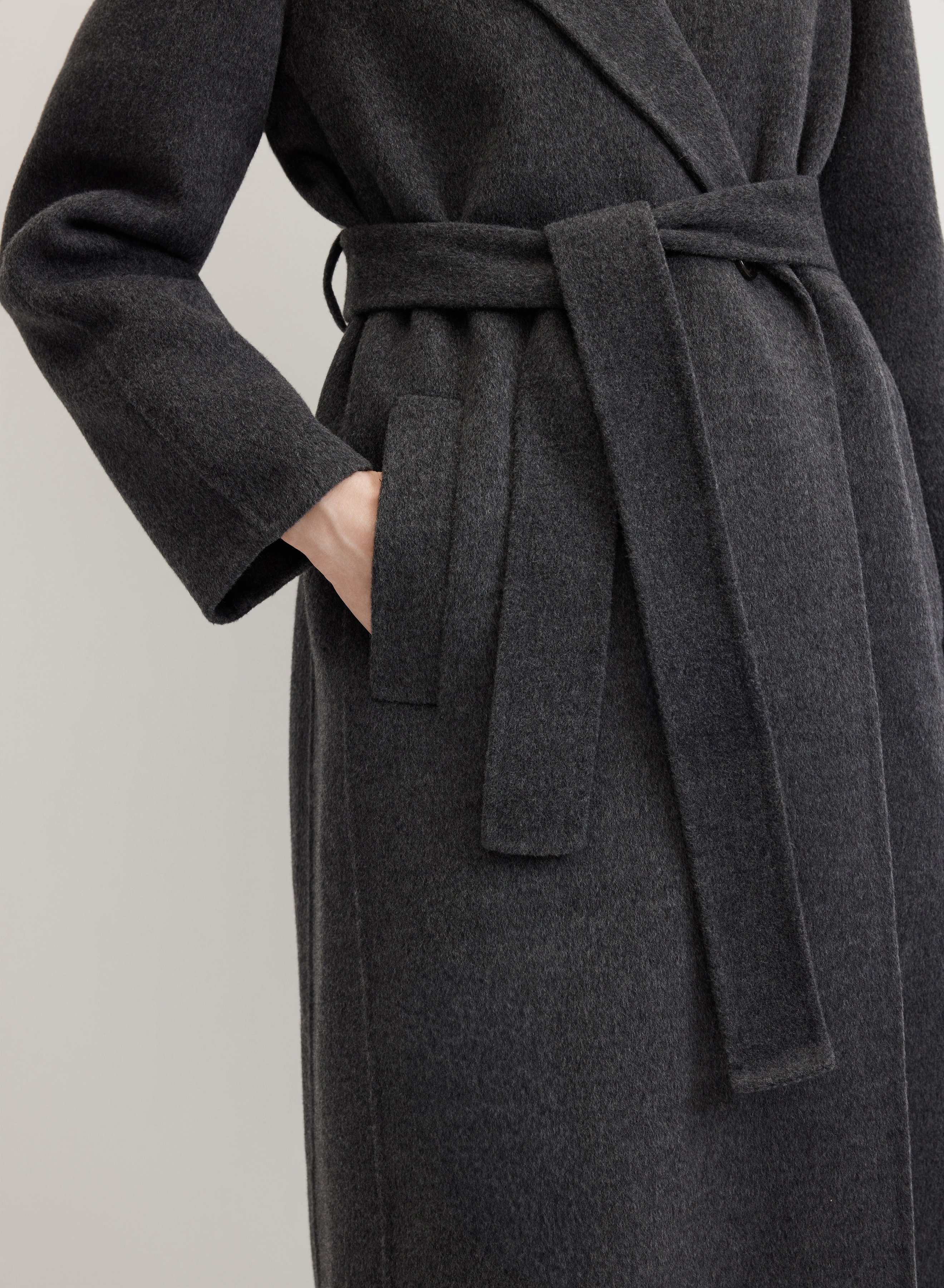Пальто выполнено из нежной фактурной ткани на основе шерсти и кашемира, произведенной с бережным отношением к природе и животным. Приятный к телу материал защищает от ветра и легких осадков, дарит уют в непогожие дни. Шелковистая подкладка обеспечивает комфортную посадку по фигуре.