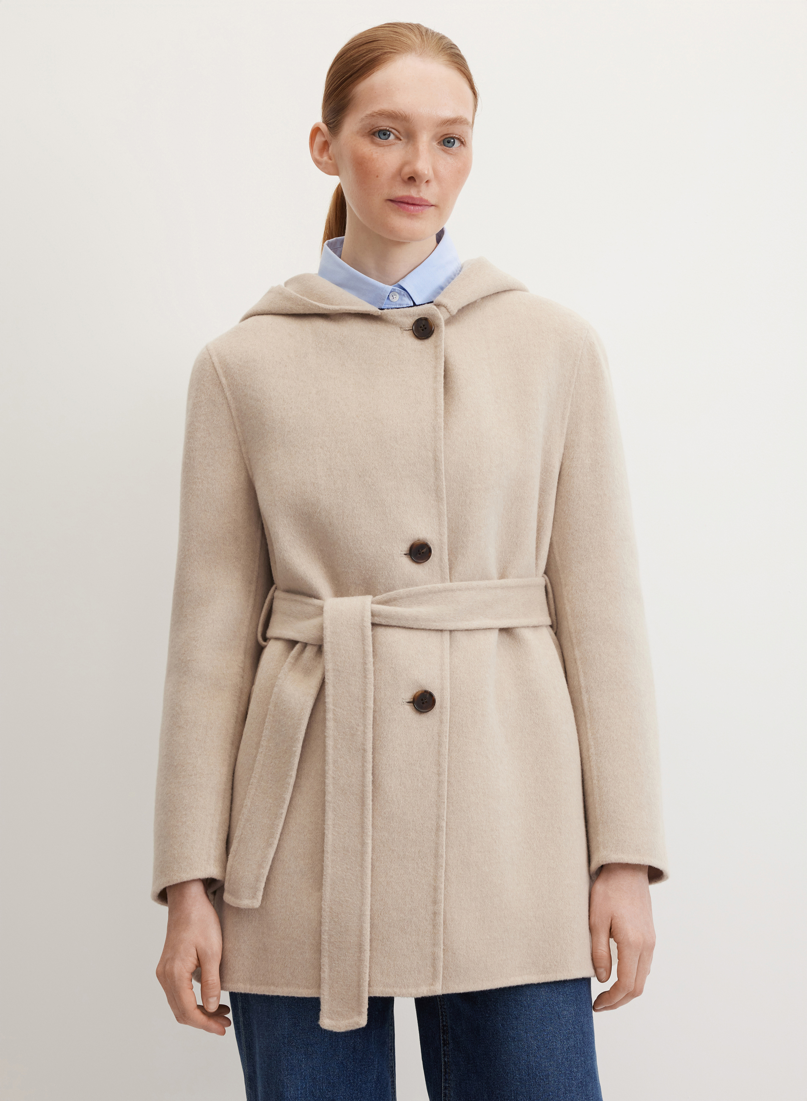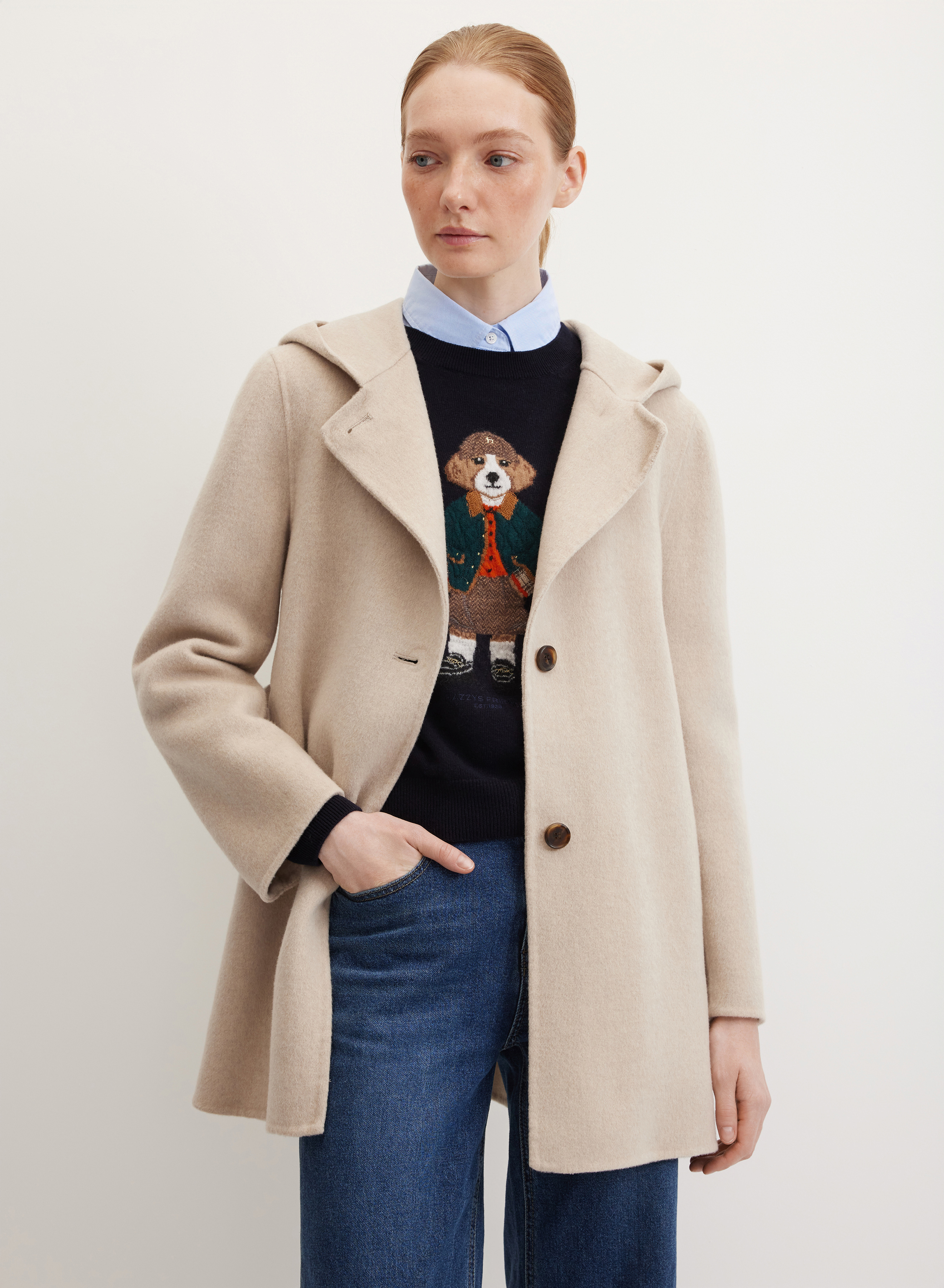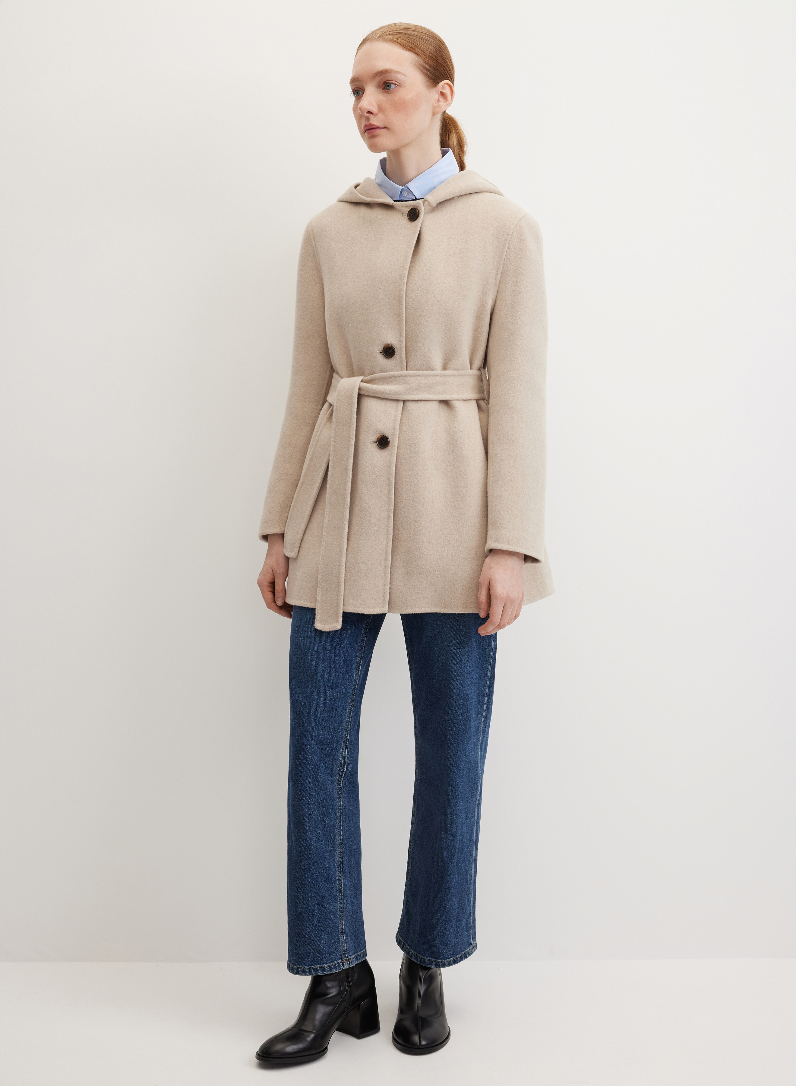 Премиальная шерстяная ткань с добавлением кашемира придает модели особую мягкость, защищает от ветра и согревает в прохладные дни. Гладкая шелковистая подкладка обеспечивает комфортную посадку и дополнительно защищает от непогоды.