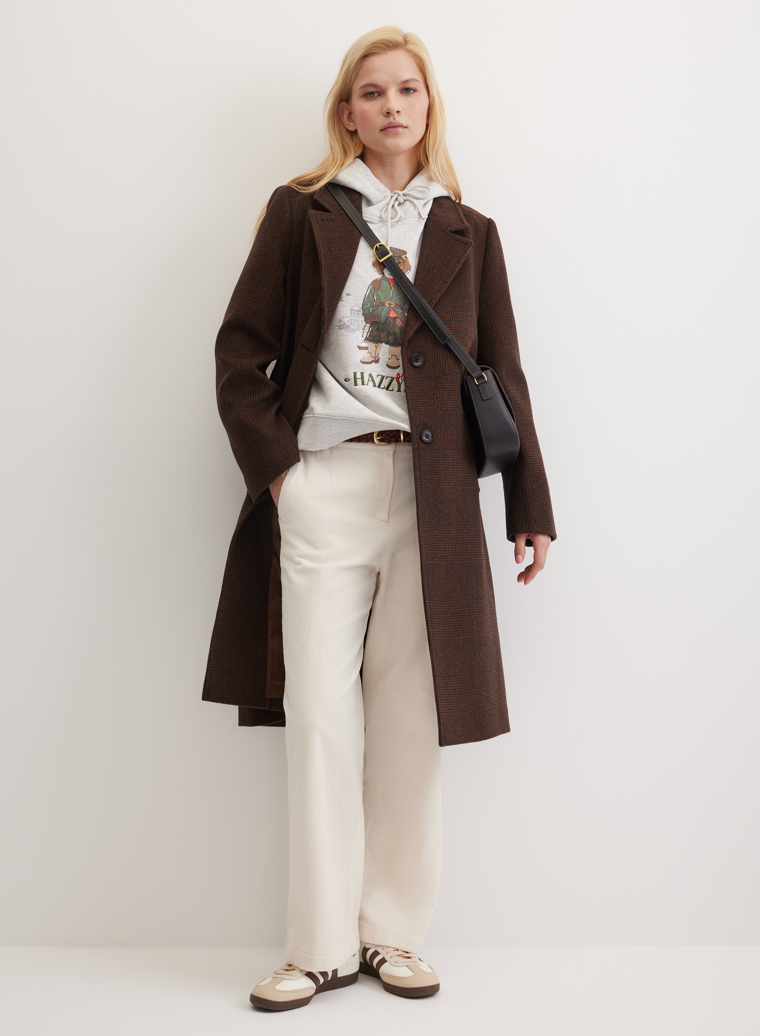 Длинное однобортное пальто – идеальное решение для холодного времени года. Свободный силуэт и широкие отрезные рукава не сковывают движений, а английский воротник делает модель более утонченной и изысканной. Сзади предусмотрена шлица. Внутри – практичная подкладка.