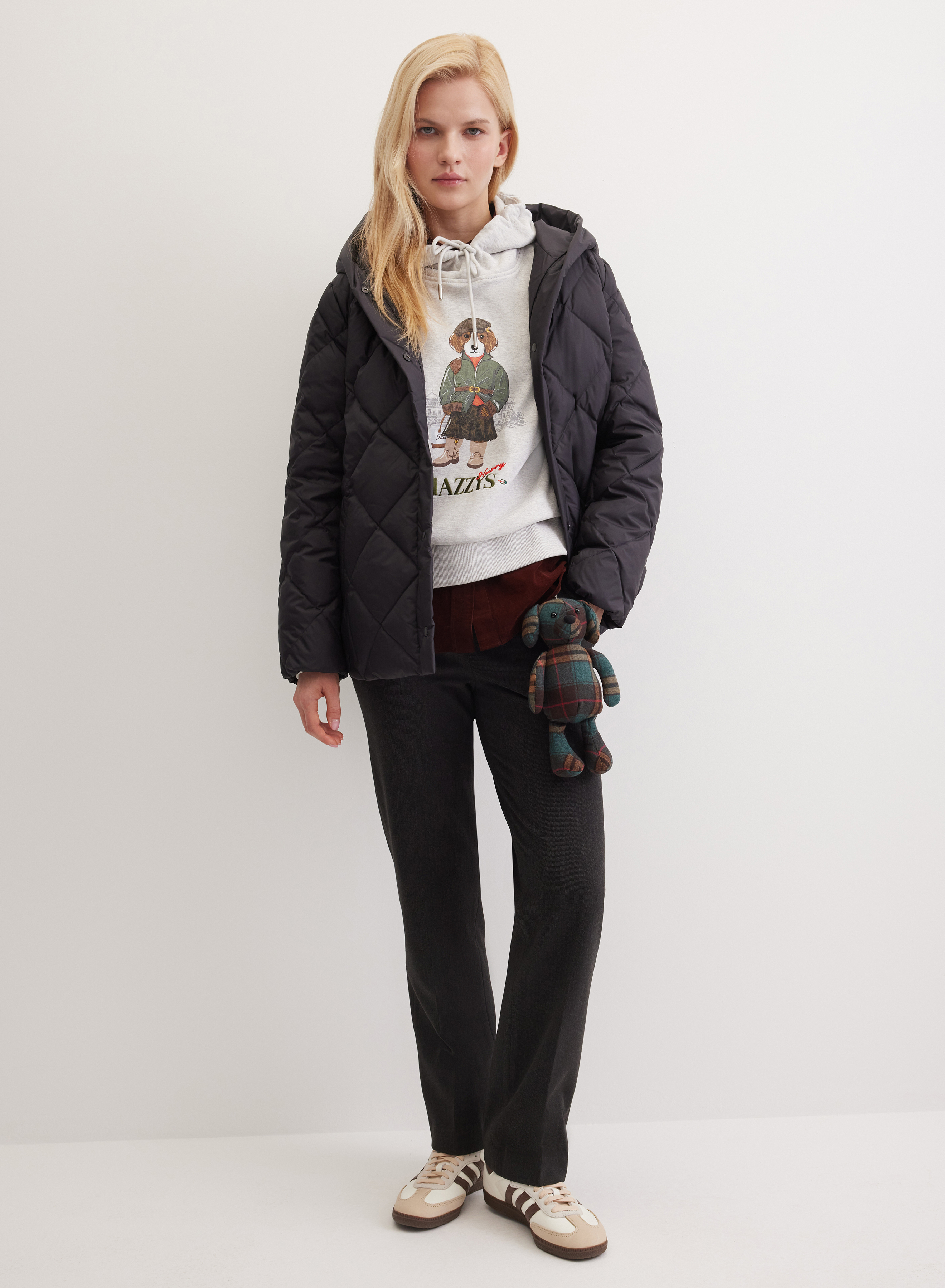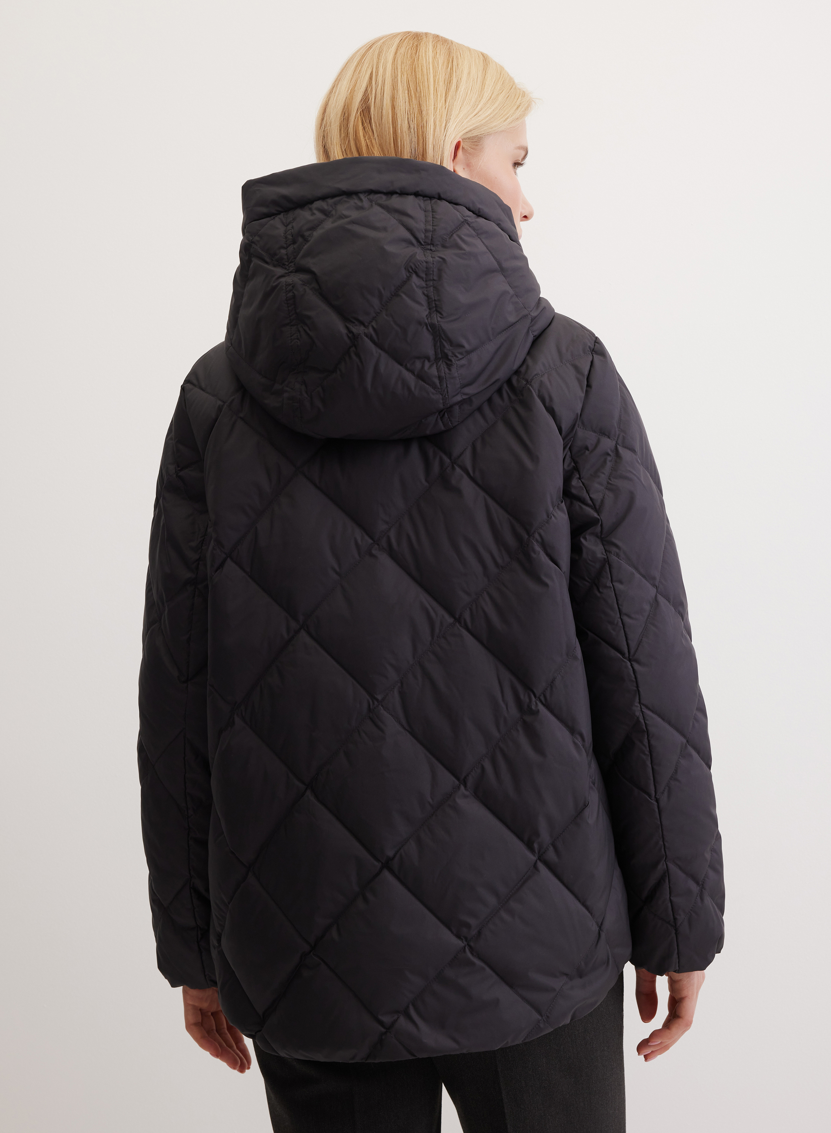 Стеганый пуховик с объемным капюшоном
