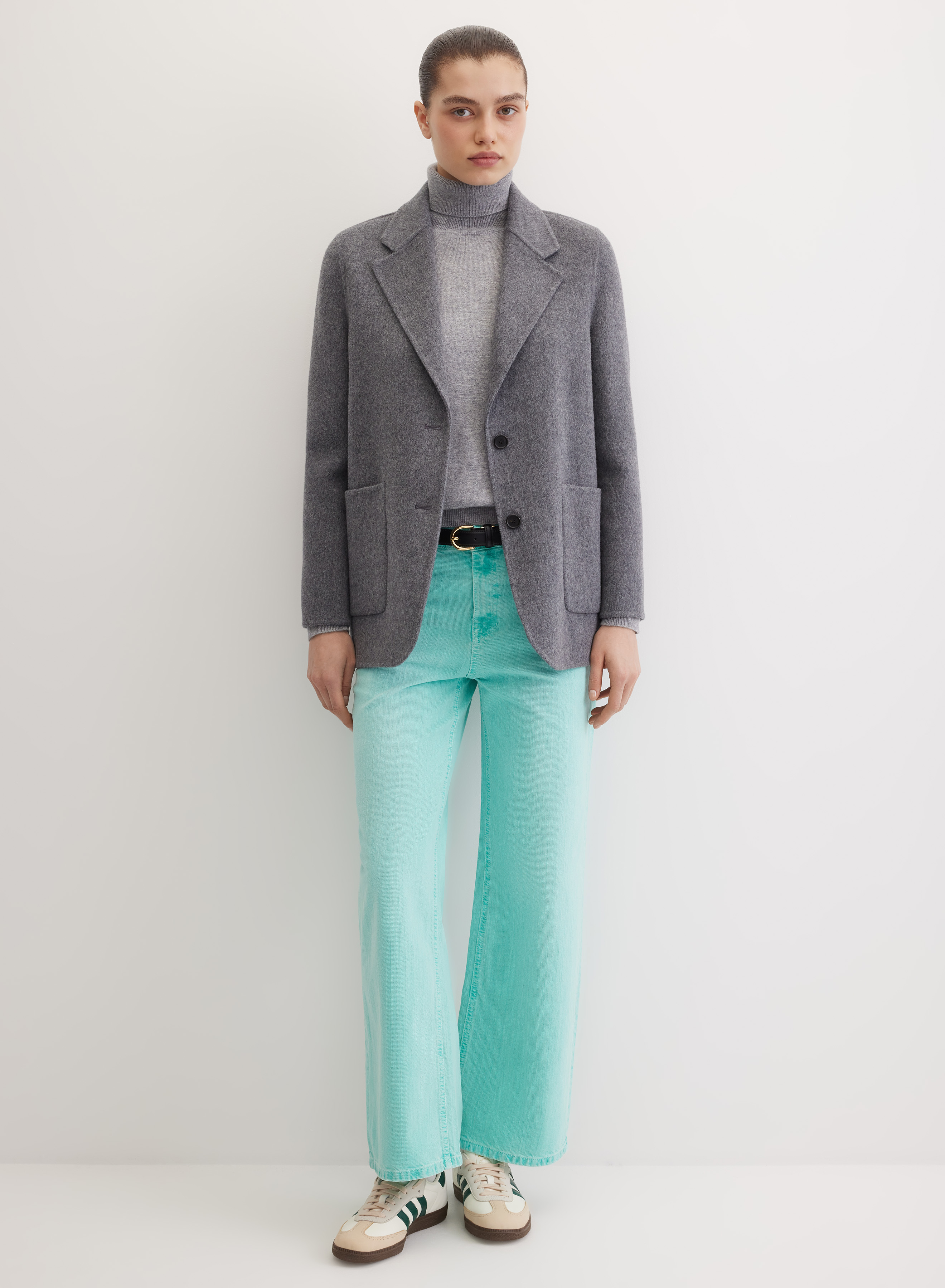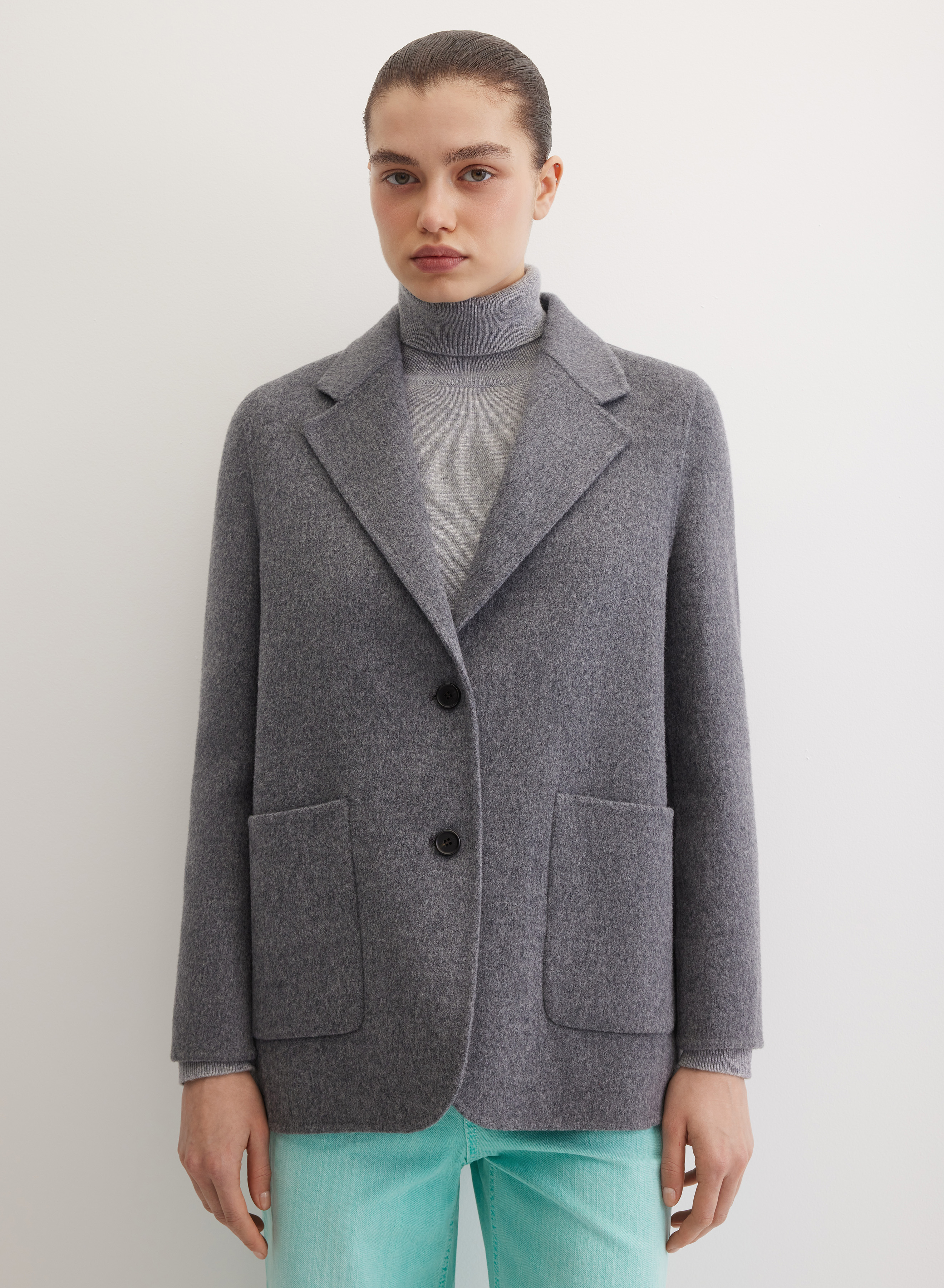 Жакет выполнен из ткани ручной работы, сотканной из смеси шерсти и кашемира, что обеспечивает исключительную мягкость и теплозащитные свойства. Подкладка в области воротника улучшает посадку и сохраняет форму изделия.