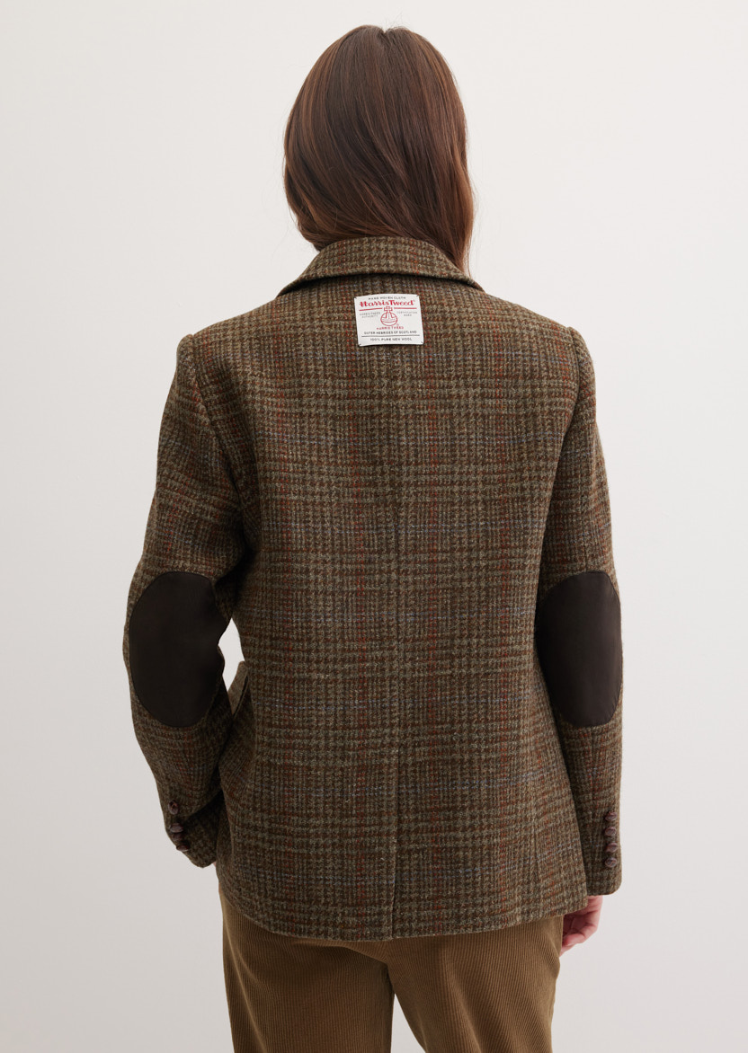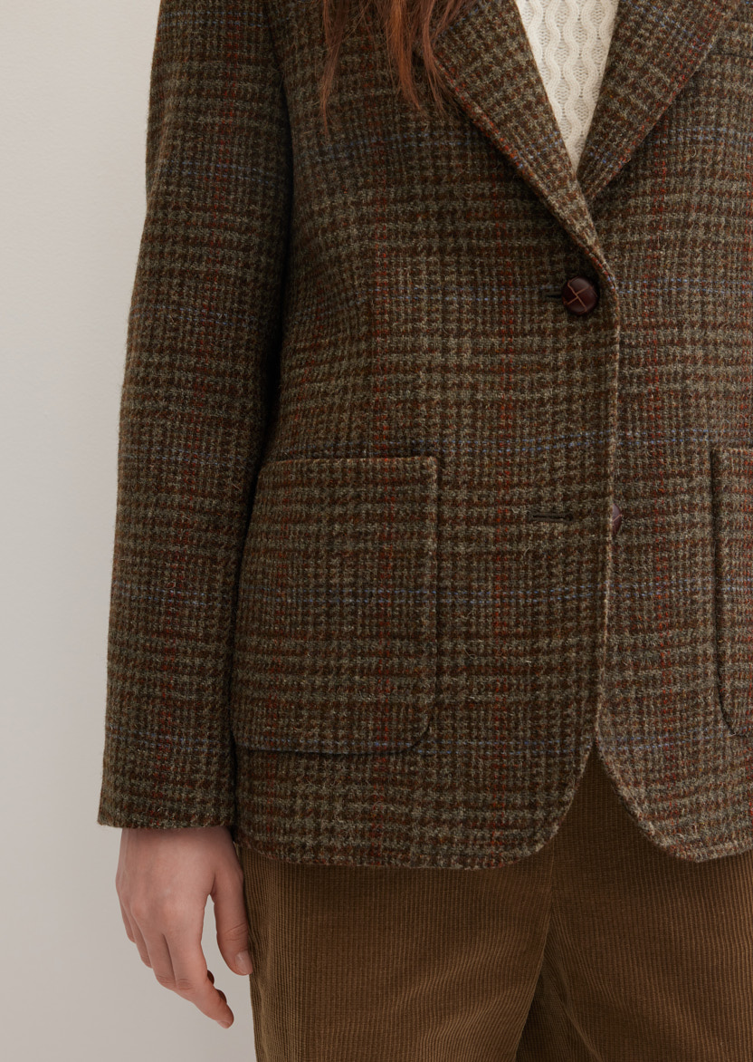 Пиджак выполнен из премиального твида Harris Tweed, сотканного вручную из нежной шотландской шерсти. Фактурный материал сочетает естественную воздухопроницаемость и прочность, хорошо согревает и обеспечивает комфорт в течение всего дня. Шелковистая подкладка улучшает посадку и сохраняет форму изделия.